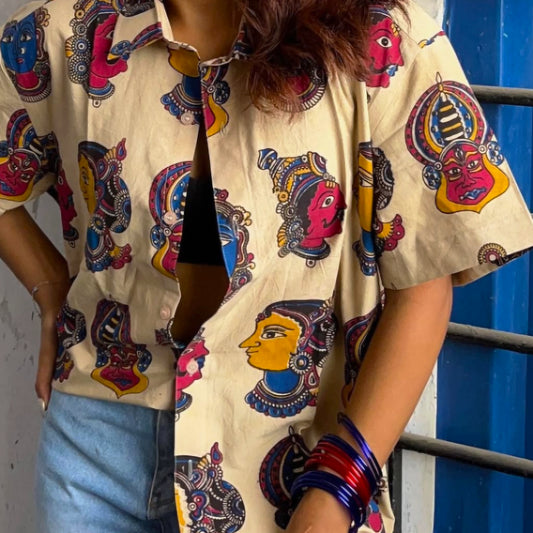 Vann 1 Kalamkari in Beige Cotton Unisex Shirt
