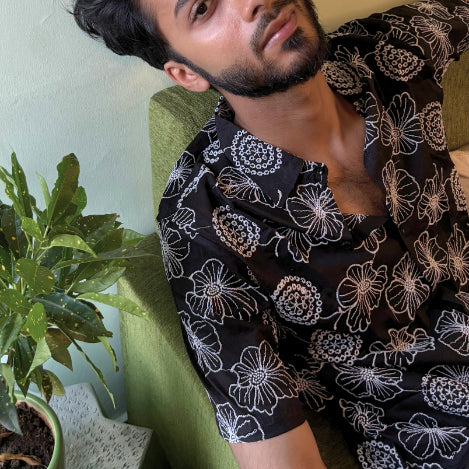 This kimono-style shirt is our desi interpretation of a classic Asian silhouette, reimagined through the lens of Indian handcraft.