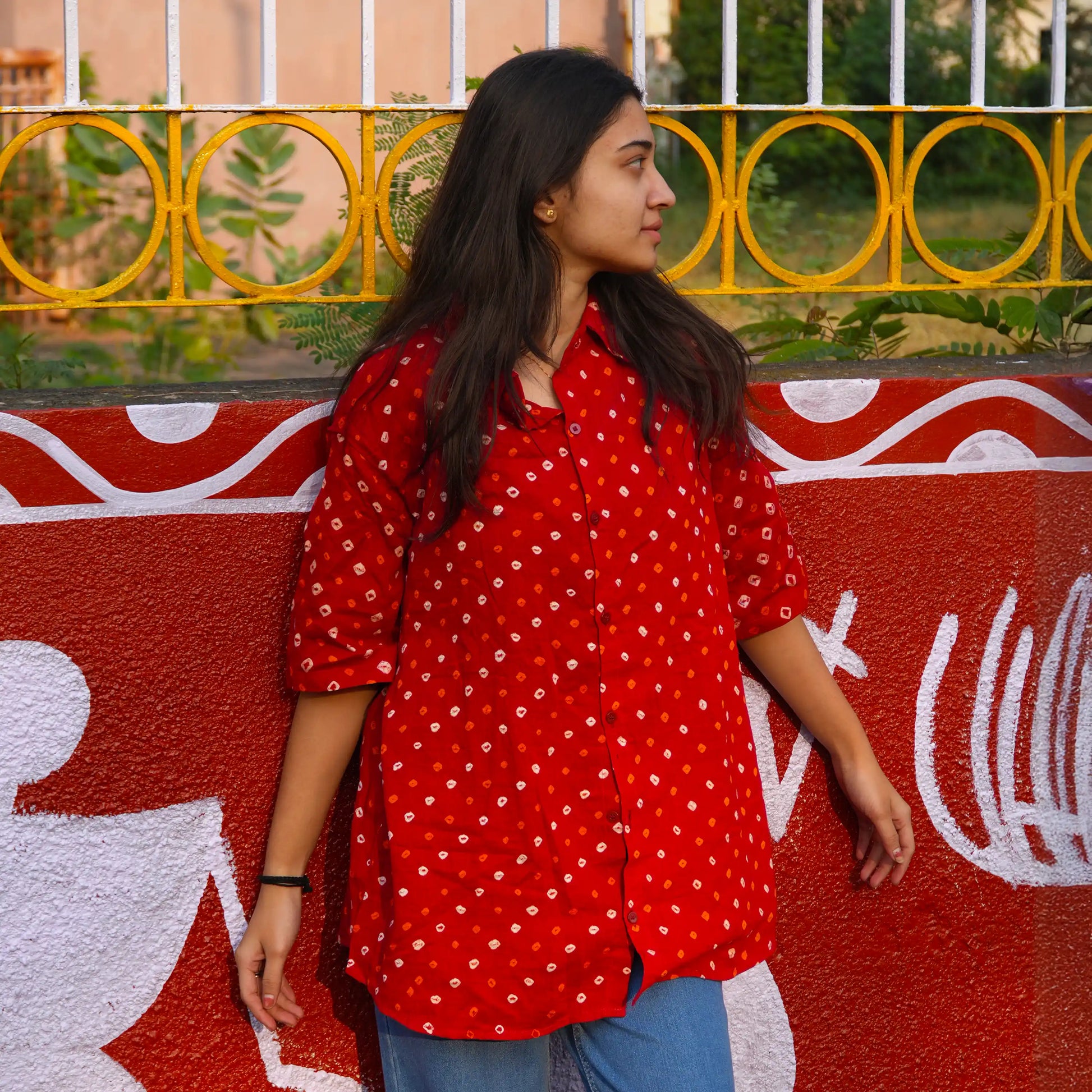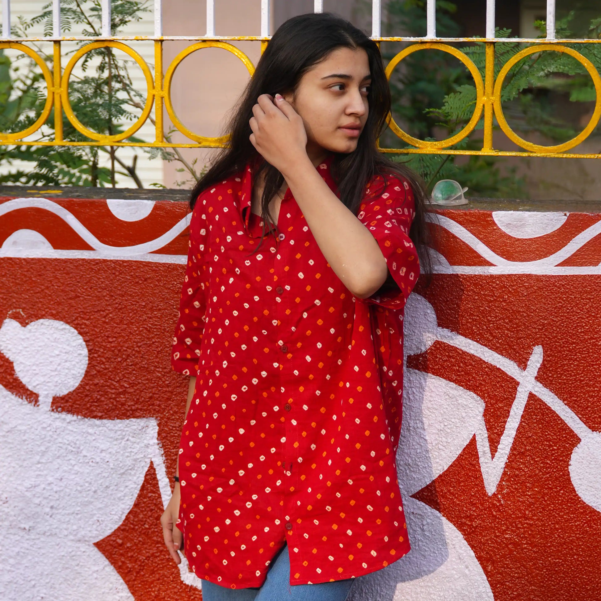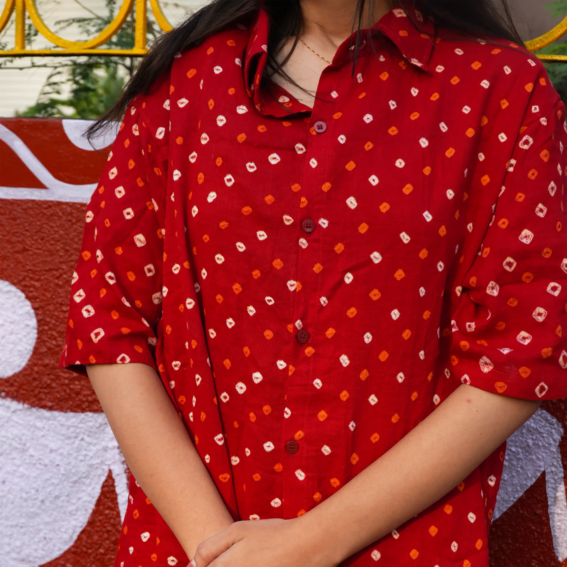 Celebrate timeless elegance with our Red Bandhani Cotton Shirt, a perfect blend of tradition and contemporary style. Handcrafted with care in India, this shirt features an authentic Bandhani print, a revered textile art known for its intricate tie-dye patterns and cultural richness.